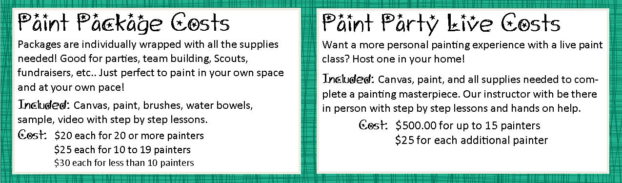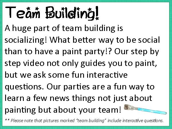Join in the fun! Our paint packages are perfect for team building, birthdays, zoom parties or whatever the party! A step by step video lesson is provided along with all the supplies needed to complete a canvas. Email us to purchase a party package or book a party! gorilla@gorillaartstudio.com